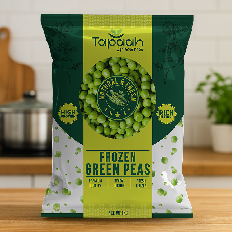 At Tapaah Greens, we carefully select the finest green peas, harvest them at their freshest, and freeze them instantly to preserve taste, color, and nutrients.Our fresh frozen peas are rich in protein, high in fiber, and 100% natural — perfect for healthy, quick, and delicious meals every day.